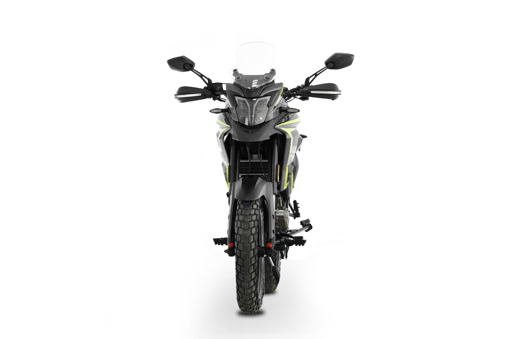 Данная модель комплектуется литыми колесными дисками и универсальными туристическими шинами. Протектор шин обладает соотношением 80/20, где 80% это — асфальт, 20% — грунт. Размерность шин следующая: спереди — 110/90-17, сзади — 130/80-17.